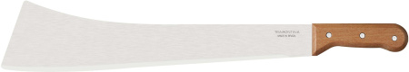 Lame en acier carbone Manche en bois Fabriquée au Brésil : 44.9cm Longueur totale : 58.8cm Largeur de lame : 4.8cm et 10.5cm Epaisseur du manche : 2.3cm Poids : 570g Etui souple en plastique transparent (pas possible de le mettre à la ceinture)